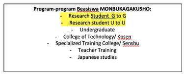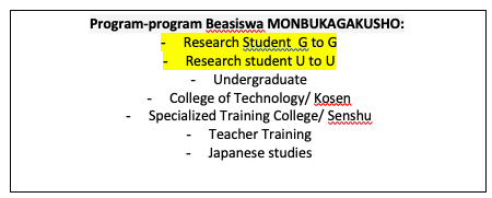 Beasiswa MEXT sendiri terdapat berbagai macam jenis program, pastikan kamu cocok masuk ke program tsb.